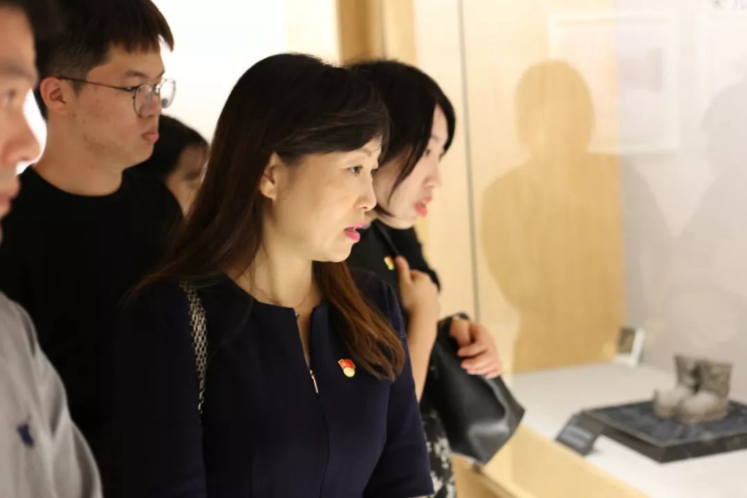 随后,在红蜻蜓集团讲解员带领下,党员同志们参观了红蜻蜓中国鞋文化博物馆。据讲解员介绍:红蜻蜓中华鞋文化博物馆共收集了1500多双鞋履藏品,主要分为“历史沿革区”、“三寸金莲区”、“少数民族区”等三个主题进行展示。进入展厅,一双庞大的龙凤呈祥婚鞋格外引人注目,透明的玻璃窗内一双双珍贵鞋履诉说着自己的故事,从最古老的鞋到现代制鞋的嬗变轨迹,系统反映中国鞋履文化几千年的历史面貌和发展过程。