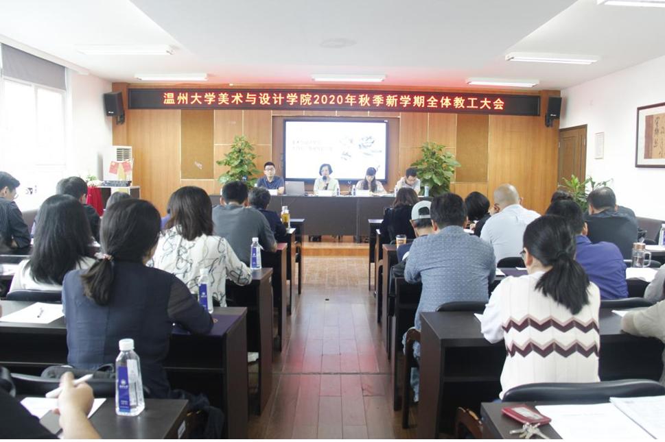 9月23日,在2B4001召开努努影院 2020年秋季新学期全体教工大会,院长谢子静、党委副书记杨丽君、副院长胡文超、副院长顾任飞等出席会议,全体教职工参加会议。会议由杨丽君副书记主持。 会上,杨丽君副书记传达了2020年暑期党委理论学习中心组(扩大)学习会上校党委书记谢树华《锚定发展目标、深化治理改革、激发主体动能,在新起点上努力推进学校实现高质量发展》重要讲话和校长赵敏《科学谋划、乘势而上,以“重要窗口”标准奋力推进高质量发展》“十四五”规划专题报告的主要精神。 随后,杨丽君副书记介绍新教师个人情况,并宣布新教师的结对工作导师。谢子静院长为新教师佩戴校徽、赠送入职礼盒,胡文超副院长为担任新教师工作导师的教师颁发聘书。朱国平老师代表新教师发言,衷心感谢学院领导的关怀和帮助,并表示,学院为新教师提供了广阔的发展空间,未来也要为美院的建设不遗余力地去奉献。 紧接着,杨丽君副书记、胡文超副院长、顾任飞副院长分别围绕着学院下半年的重点工作进行了具体部署。 最后,谢子静院长作学院工作报告。首先,她充分肯定了在疫情之下,学院各项工作能稳步推进,主要工作取得了显著成绩,并向辛勤付出的教职工表示感谢。随后,谢院长作学院“十三五”总结和“十四五”发展规划的专题报告。她回顾了学院在“十三五”期间取得的成绩,也指出了存在的问题和困难。针对学院发展面临的机遇与挑战,她提出了学院“十四五”发展时期人才队伍建设、学科建设、专业建设、人才培养、科学研究、服务地方、国际合作、党的建设等八大方面的工作目标和具体任务,并要求全院教职工为实现“建设具有较强办学实力、特色鲜明的省内高水平艺术学院”的目标而不懈努力。最后,她对新学期的工作思路和重点工作作了部署。她提出,本学期学院要坚持全面从严治党,切实加强党的建设,围绕着“以本为本、科教融合,聚焦人才、内培外引,校地互动、服务地方,搭建平台、合作办学”,完成“优化人才队伍建设、做强专业建设、做特服务地方”三大目标,持续推进学院事业发展。