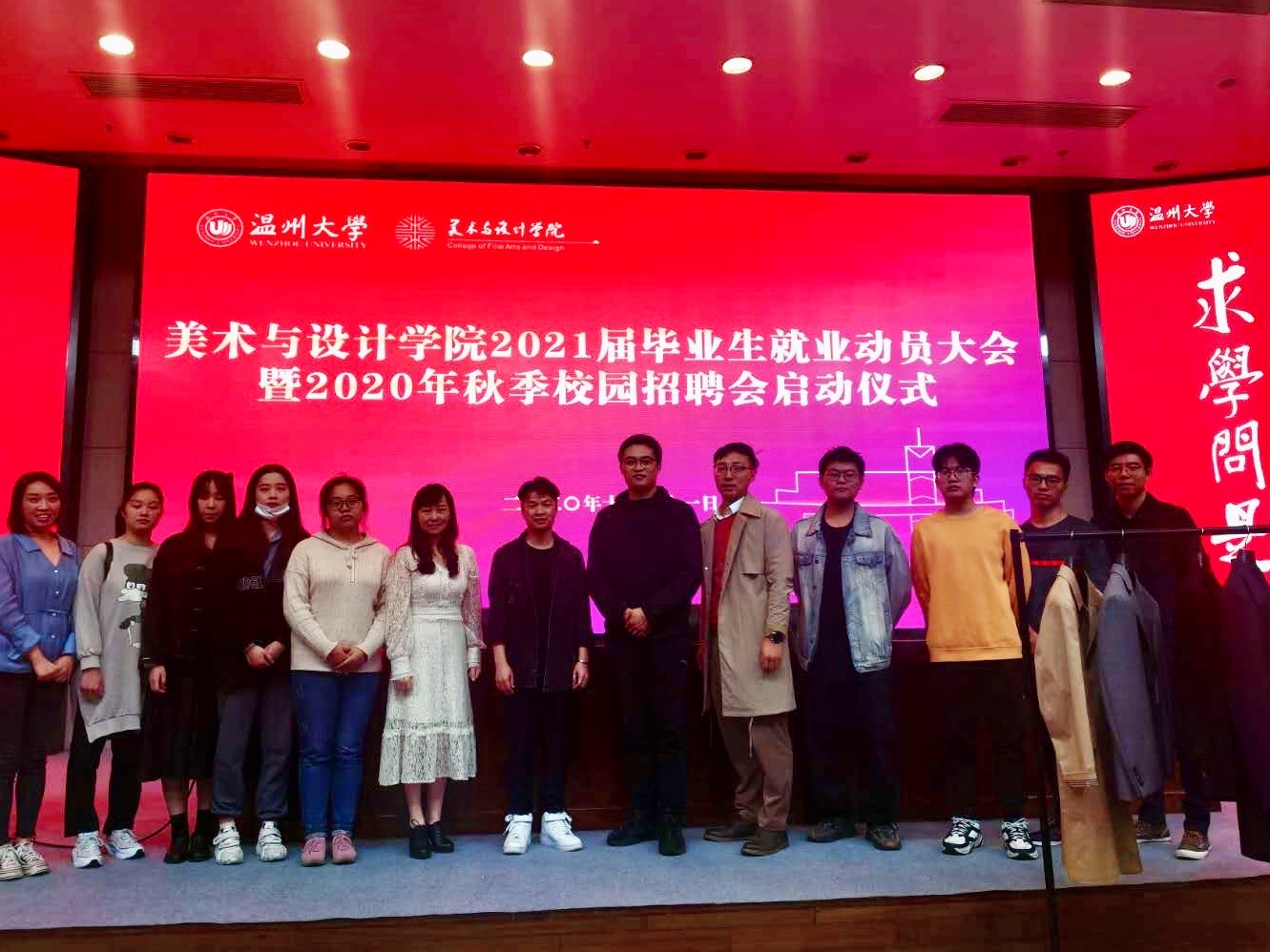 为进一步做好2021届毕业生就业工作,10月21日晚18:30,努努影院 于图书报告厅举行了2021届毕业生就 业动员大暨2020年秋季校园招聘会启动仪式。莅临本次活动的有学院党委副书记杨丽君,东蒙集团技术 委员会主任陈波、东蒙校招主管郑政、温大14服装设计与工程本(卓工)校友沈宇烽。大会由美术学院学 工办主任杨鹏老师主持。