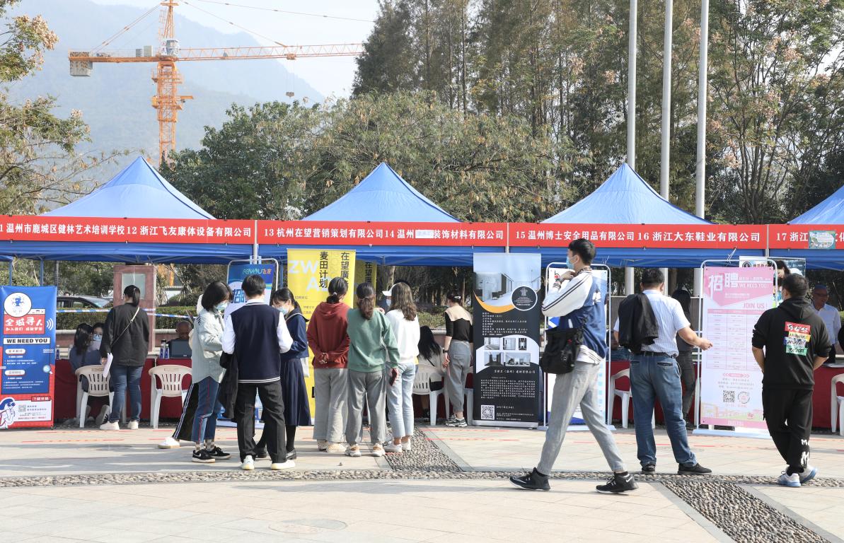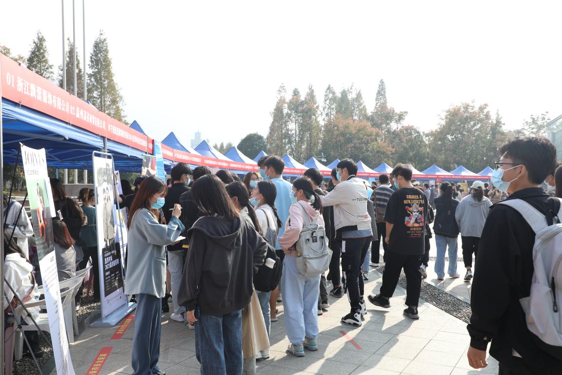 2020年11月8日下午,努努影院 2021届毕业生专场招聘会于大学生活动中心广场顺利举办。招聘会上,来自上海、杭州、宁波、台州、嘉兴等地区的64家单位,携2000余个岗位广揽英才,吸引了服装、设计、美术等校内外近千人才参加,其中努努影院 瓯江学院艺术设计分院、在温高职院校相关专业毕业生到会参与,场面热闹而有序。