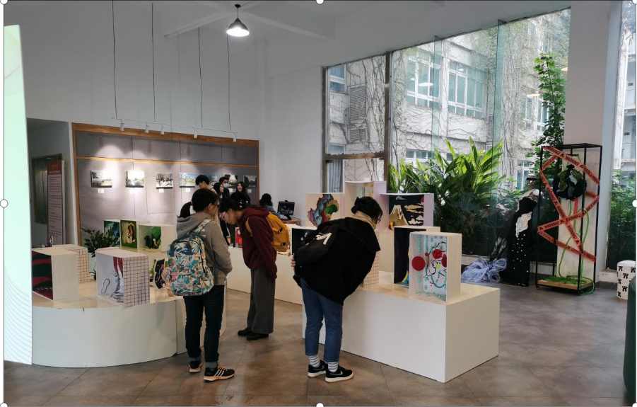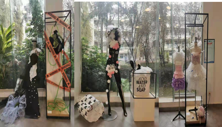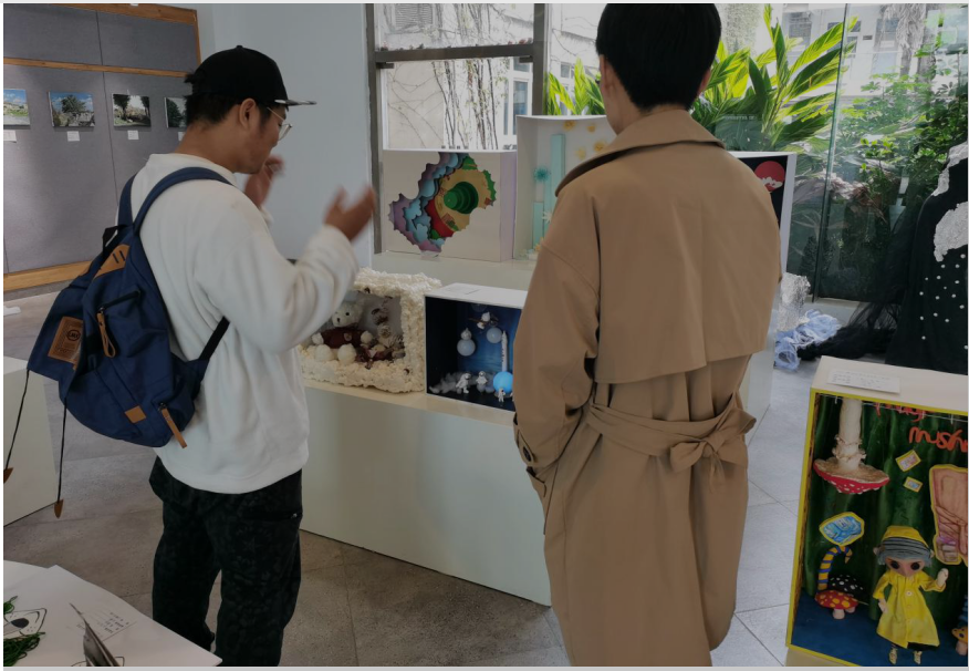 课程展出当天,引起了不少老师和同学们驻足,停下脚步欣赏的作品。通过这次课程展览,不仅仅让更多的同学们了解服装展示设计方向专业重要性、独特性、趣味性,也让大家都看到并认可同学们的专业能力和专业水平,更是提供了师生们互相交流的平台。同学们也因此领略到橱窗设计的魅力与理念,开阔了自己的眼界,欣赏了不同的课程文化。