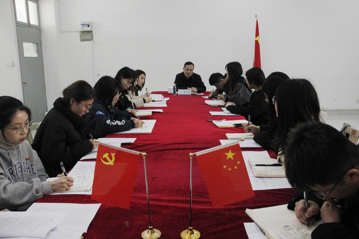 2021年3月23日下午,努努影院 学生第一党支部在美术楼2B2002会议室开展以“学党史、守初心”为主题的专题学习会,校党委委员、宣传部部长潘玉驹作为联系该支部的校领导全程参与指导活动。活动由支部书记黄文杰主持。