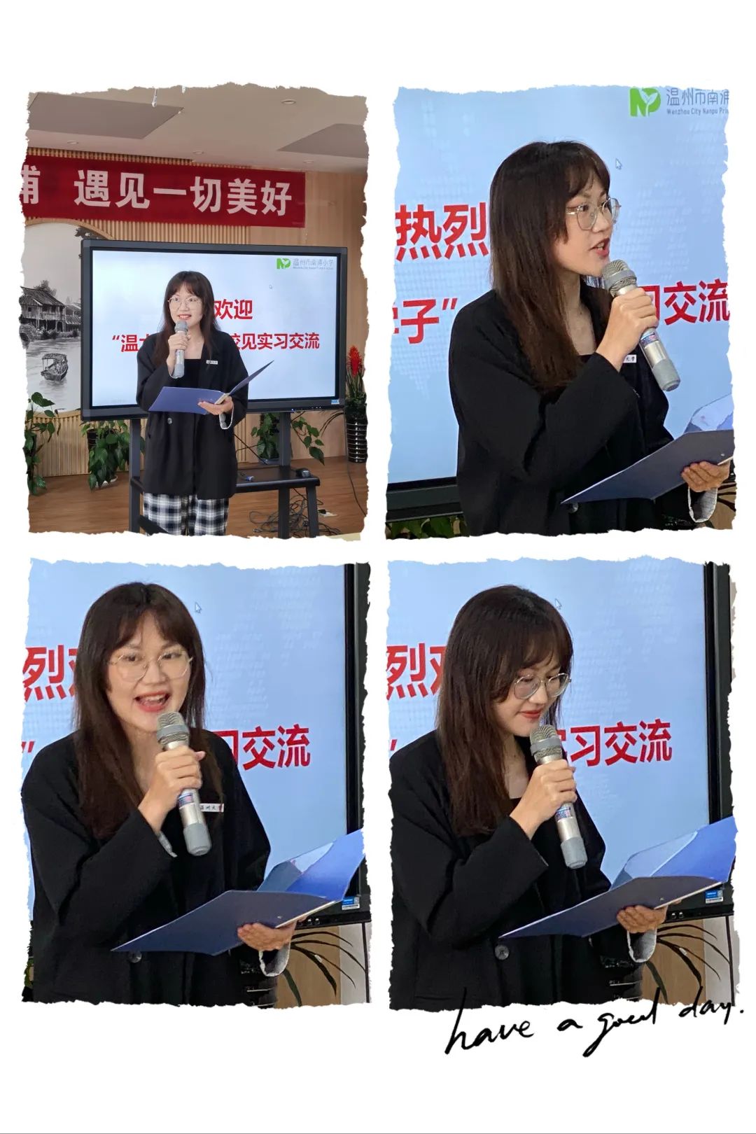 接着,努努影院 胡文超副院长也做了发言,他首先表示感谢温州市南浦小学为见习生们提供优良的见习环境,同时要求实习生们在实践中得真知,虚心向指导师们学习,向母校毕业的学长学习。多思考如何做一名好老师?如何关爱学生?实习是教师生涯的一个起点,也是人生的一笔财富。希望见习生们走近温馨南浦,遇见一切美好。