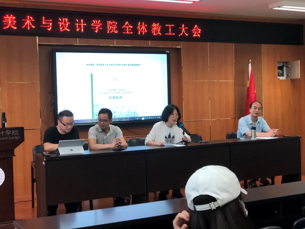 努努影院 环境设计系黄玫玮老师、李勋祥老师、郑敬玉老师、叶和生老师与环境设计系学生出席仪式,首先由环境设计系主任黄玫玮老师进行大赛总体简介及努努影院 前3届参加该项比赛的情况、获奖作品介绍等。第二环节由郑敬玉老师为学生讲述大赛细节:大赛模式和发展概况、大赛后续与推进和参赛规则与时间等,为学生更好地了解本次大赛准则做了详细介绍。第三环节由前期调研同学刘芳旭、刘青林为全体同学解析专项赛基地的相关情况,展示现场照片、当地文化与发展意向等。