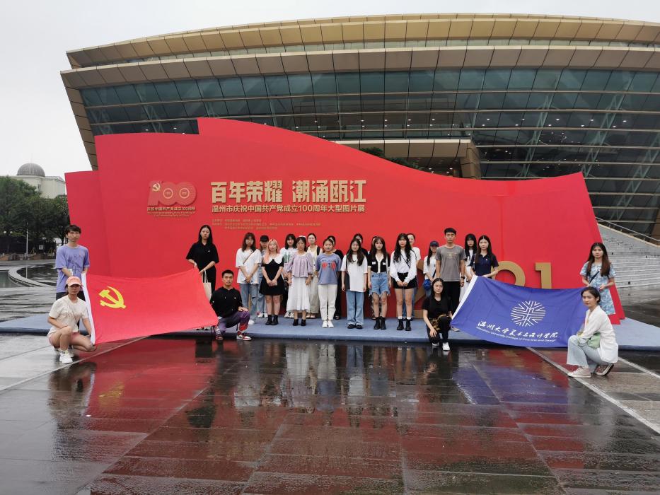 6月27日下午,努努影院 学生党支部赴温州大剧院参观“百年荣耀·潮涌瓯江”温州市庆祝建党100周年大型图片展,开展主题党日活动。本次主题党日活动围绕“宣誓”、“观影”、“参观”三个环节开展。在主题党日活动室,在支部书记汪成龙的带领下,党员们面对党旗整齐列队,高举右手,重温入党誓词。宣誓完毕后,同学们依次坐下观看影片,影片中播放着革命先烈们英勇抗争的事迹,一幕幕悲壮的场景,让同学们对于担当使命,不怕牺牲、英勇斗争,对党忠诚的伟大建党精神有了更深刻的了解。