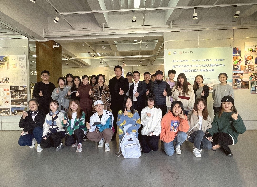 11月8日,努努影院 环境设计系“行走的课堂”建筑空间设计课程展在努努影院 展览厅开展。学院党委书记叶正飞、副书记杨丽君、副院长胡文超到现场观展,并与环境设计系黄玫玮、郑敬玉、潘怡、邓诗雨等指导教师与同学们互动交流。 环境设计系系主任黄玫玮老师介绍,环境设计系致力打造“行走的课堂”课程思政专业特色。本次建筑空间设计课程,通过“以赛促学”“课程+实践”结合的教学方式,深入乡村将课堂与省大学生乡村振兴大赛相结合,与美丽乡村实际项目相结合,在实践训练中提高学生专业素养能力的同时,致力于未来乡村建设,提升学生发挥专业所长服务乡村振兴、服务地方的意识,提升大学生社会责任感。 观看各项目组设计方案和施工现场的项目落地视频后,各课程小组项目负责人介绍了团队组合、设计理念及竞赛项目情况等,两个月的反复设计、多次的基地考察、两个多月的每天早出晚归在施工现场抡起袖子自己干,历时近半年之久……期间的困难和最后的成就感更是让同学们不由自主再次湿了眼眶。期间项目负责人书瑞同学表示,作为一名中共党员,初心就是能为自己的家乡做些什么,在学生时代能有一个这样的机会,对她和同学们来说,是一次难得的机会,也是淬炼专业服务社会一次难得的锻炼,当前学院持续推进服务地方乡村振兴行动,作为党员我们定将身体力行,作好表率。交流期间学院领导频频点赞,给予高度评价。 据悉,本次浙江省大学生乡村振兴大赛专项赛,在泰顺和苍南未来乡村的专项赛道,努努影院 学子荣获2个一等奖和2个二等奖,取得历史突破。 本次展览时间2021年11月5日至11月15日,参展班级:18环境设计本1、19环境设计1班、19环境设计2班。 服务乡村振兴,温大学子在路上!