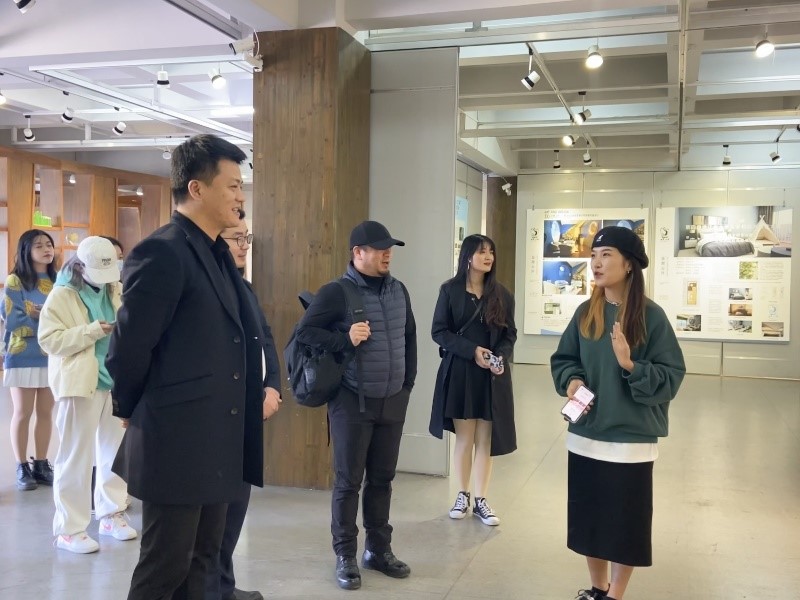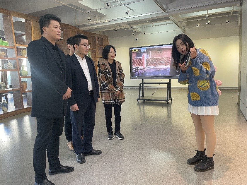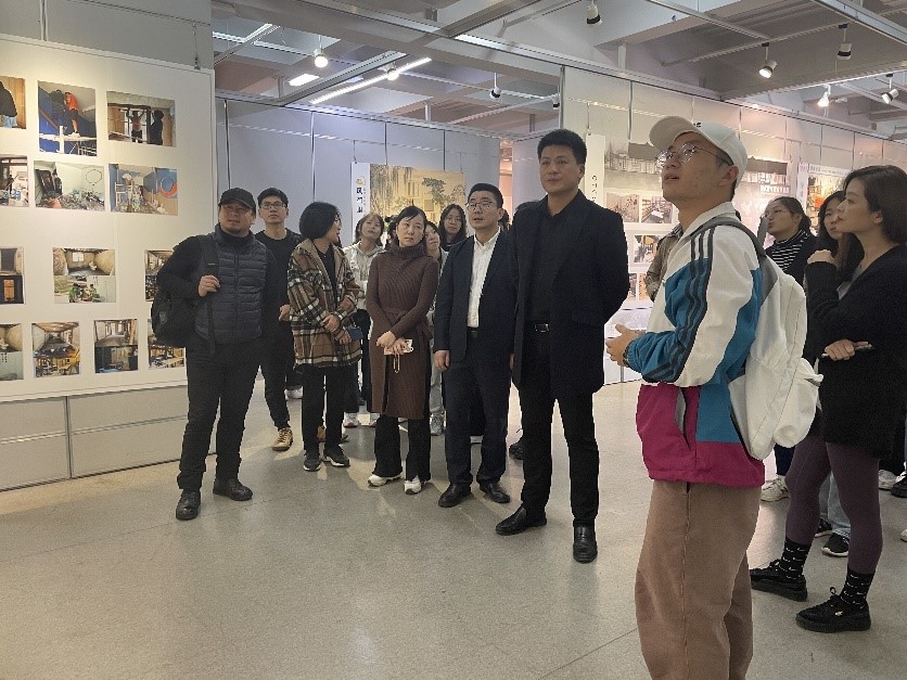 11月8日,努努影院 环境设计系“行走的课堂”建筑空间设计课程展在努努影院 展览厅开展。学院党委书记叶正飞、副书记杨丽君、副院长胡文超到现场观展,并与环境设计系黄玫玮、郑敬玉、潘怡、邓诗雨等指导教师与同学们互动交流。