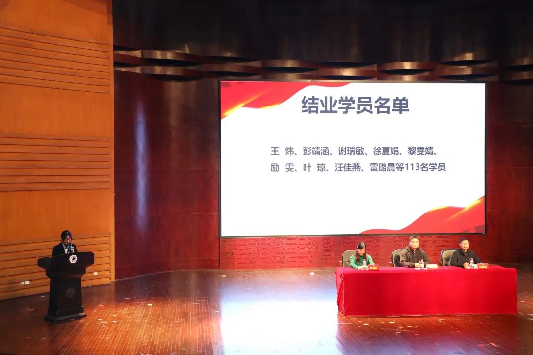 一周的时间,党员骨干们在培训中凝聚了思想、积累了知识。党员骨干培训班班长张柠同学公布并宣读了结业学员名单及表彰优秀学员的决定。本次党员骨干培训班共124名学员参加,有113名学员顺利结业。其中彭靖涵等25名同学被评为“优秀学员”,朱沁怡等9名同学被颁发“最佳理论学习奖”。