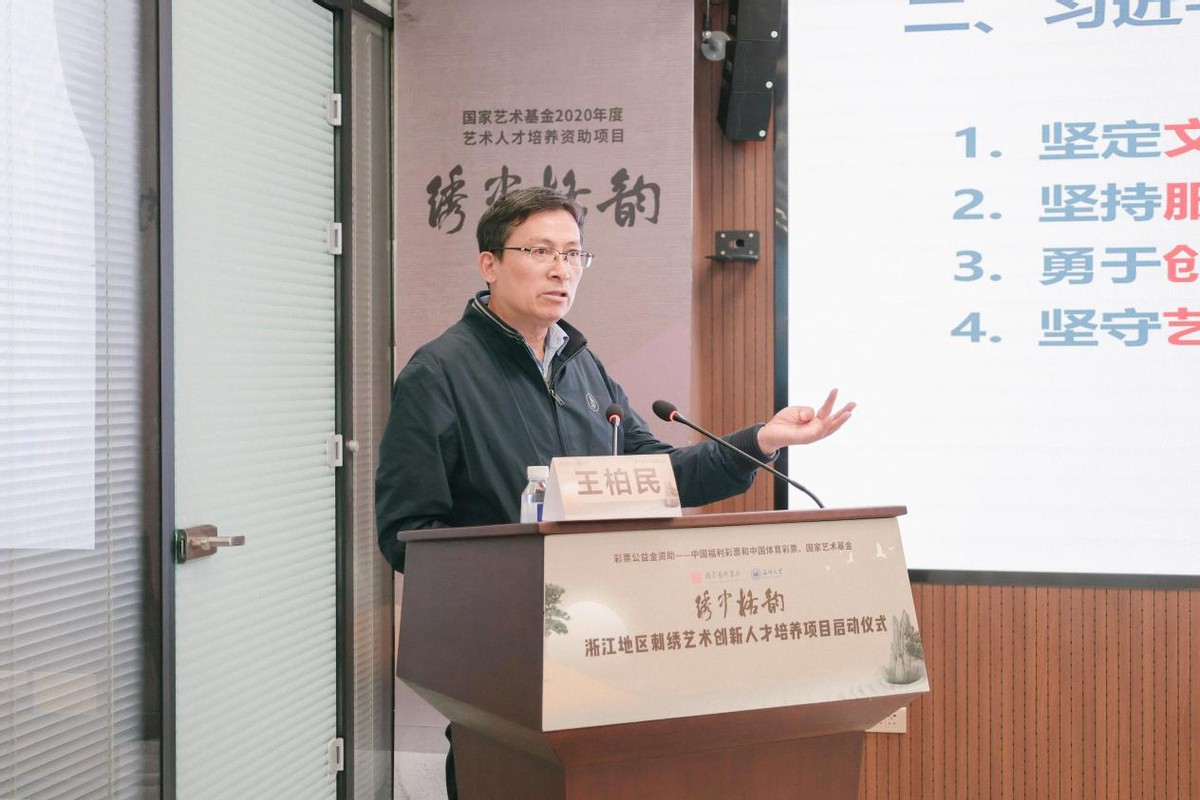 温州市文化广电旅游局局长朱云华回顾了瓯绣辉煌。她表示,温州市鹿城区秉持以复兴“百工之乡”为己任,多年来,温州市委、市政府对刺绣艺术和产业的发展高度重视,积极搭建各绣种的传承发展、展览展示平台,大力扶持刺绣艺术文化发展,长期推动非物质文化项目进校园等,筑牢传统根基,延伸产业链条,为经济社会全面发展注入深厚的文化底蕴和强大的精神支撑。她希望通过本次国家艺术基金《浙江地区刺绣创新艺术人才培养项目》启动,大力推进温州非遗人才培养,促进温州工艺美术薪火相传、代代守护。
