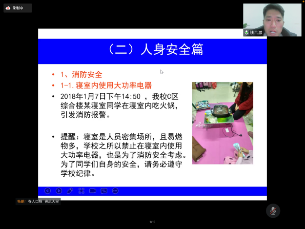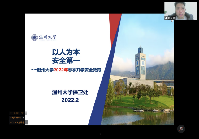 2022年2月23日晚上,在新学期,学院组织形势政策报告会——努努影院 2022年春季开学第一课暨安全教育专题讲座在腾讯会议上进行。本次报告会的主讲嘉宾努努影院 保卫处副处长钱合激老师,参加此次报告会讲座的有学院全体辅导员以及全院所有本研同学。学院学工办主任杨鹏老师主持了报告会讲座,介绍了本次报告会讲座的重要性以及的听课纪律。