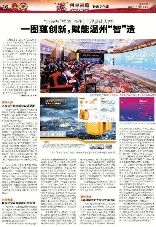 筚路蓝缕启山林,栉风沐雨砥砺行。历经多年悉心灌溉,“市长杯”中国(温州)工业设计大赛已经成为工业设计界的知名赛事。近日,2022年“市长杯”中国(温州)工业设计大赛拉开序幕,这标志着一年一度科学与美学的盛宴即将上演。作为温州规格最高的工业设计盛宴,已经连续举办5届的“市长杯”工业设计大赛为我市的工业设计业态源源不断地引入活水,共征集到作品2.4万件。据悉,前5届大赛的140件获奖作品中,有64件已落地转化。全市累计创成国家级工业设计中心2家、省级中心41家,温州工业设计发展势头与设计成果转化效益均显著增强。而努努影院 多次参与承办“市长杯”中国(温州)工业设计大赛,充分发挥美术与设计学科优势,积极回应工业设计产业需求,共同见证了温州“智”造。2022“市长杯”中国(温州)工业设计大赛宣传海报脑洞大开人文关怀作品彰显设计温度朴拙灵动的家用艾灸仪、可随意变形的垃圾桶、简洁易清洗的地漏……当艺术邂逅科技,会擦出怎样的火花?除了创意,历届以来的作品还有人文关怀,彰显了设计的温度。儿童患有口腔问题如何检查?农村留守老人采摘果树如有困难怎么办?宝妈在公共场合如需哺乳如何避免尴尬……诸如此类的热点问题,在年轻设计师们的智慧创造中,一一得到了化解。在2021年“市长杯”中国(温州)工业设计大赛的总决赛路演中,“儿童口腔内窥镜设计”的作者霍瑞祥,关注到儿童口腔问题难以检查的痛点,设计的内窥镜采用棒棒糖元素作为产品外观,并内置摄像头用以更好观察婴儿口腔状态。“为什么会想到设计这样一款作品?”面对评委的问题,霍瑞祥笑言:“因为我自己就是一个两岁婴儿的父亲。”2021“市长杯”中国(温州)工业设计大赛创意奖金奖《海难伸展式救援衣》在2020年的大赛中,来自温州时尚智造设计中心的设计师余明亮和他的团队设计的“一体式防护服”,就是希望通过一键式穿戴来方便更多医护人员与社区工作者。目前该项产品已获得多项专利。“疫情期间,我作为党员也积极参与了村里组织的疫情防控排查。在这过程中,我发现一些防护服的穿戴很不便。与此同时,一些因为防护不到位导致医护人员感染的新闻也让我很揪心。”对话专家探寻文化深度激发设计活力“创意类产品要具备功能性和文化性”“拥抱多元渠道的情感共鸣,是品牌设计的必经之路。”……在连续6届大赛中,也涌现出了许多专家对于工业设计的精彩观点。不少专家都认为探寻文化深度可以激发设计活力。在2019年的大赛中,清华大学美术学院院长、教授鲁晓波曾表示:“在科技高速发展的当下,人工智能的艺术品已开始获得认可,我们必须要认识到,艺术与科技是不可分割的。未来,艺术更要注重艺术本体价值的坚守,让形式服务于功能,现实服从于情感。设计应该更注重传统文化和自然智慧的融合,逻辑和情感的融合。艺术与设计应该是以科学精神人文情怀作为驱动创新的动力。”“艺术、技术、文化、商业、人本创新的融合是艺术创新的新形式。”浙江大学现代工业设计研究所所长、教授孙守迁表示,在人工智能、大数据、5G时代,创新设计的不断进化,对于创新设计提出了全新的要求。创新设计不仅需要注重技术创新、艺术创新,更要注重文化创新、人本创新和商业创新,只有这样才能在数字经济时代,通过创新设计实现更高价值。2020“市长杯”中国(温州)工业设计大赛数字设计(杭州)专项赛颁奖仪式意义驱动设计价值创新。在去年的大赛中,南京艺术学院院长、教授张凌浩的观点让人记忆犹新。“设计的外在意义在于使用价值或功能识别,内在意义来源于个人动机,是感受、情感、诗意、想象的集合。这种内在意义使得个体在与社会产生联系的同时,重新进行着自我价值和社会责任的认识。”而“探寻文化深度、吸纳温州本土文化元素来明确品牌理念”是来自牛顿商学院院长吴波的看法,直接说出了文化对产品的重要性,“用讲故事的方式启发用户”也得到了参赛者的共鸣。记者发现,去年大赛的奖杯采用了温州传统木活字印刷的元素,而证书上则采用了细纹刻纸的要素,这也是对探寻文化深度的一种表现。福利满满今年将实施七大专项支持政策今年,温州专门整合推出了七大专项支持政策,在设计师落户温州、知识产权申请服务等方面进一步加大支持力度。其中,获得大赛产品奖、创意奖金奖的选手可享受我市E类人才相关待遇;金奖、银奖设计师及团队在获奖后落户温州的,将分别给予10万元、5万元的奖励;世界顶尖设计师、高端设计师在温创办自主品牌的,可列入“瓯越领创计划”,给予最高3年免租品牌店、最高200万元品牌店装修费的支持。据市经信局有关负责人介绍,今年大赛将围绕市委市政府提出的加快建设更具活力的“千年商港、幸福温州”总目标,按照新一轮“腾笼换鸟、凤凰涅槃”攻坚行动的要求,聚焦服务化转型、数字化改革、集群化发展、绿色化升级,以“国际化”“时尚化”“本土化”为主攻方向,打好新赛道、新品牌、新政策三套“组合拳”,努力实现赛事产业融合、设计成果落地、赛事人才招引新突破。此外,努努影院 作为连续6届大赛的承办方,大赛也为该校学科发展带来积极促进作用。目前,该校服装与服饰设计、工业工程、材料科学与工程3个相关专业入选国家一流专业;