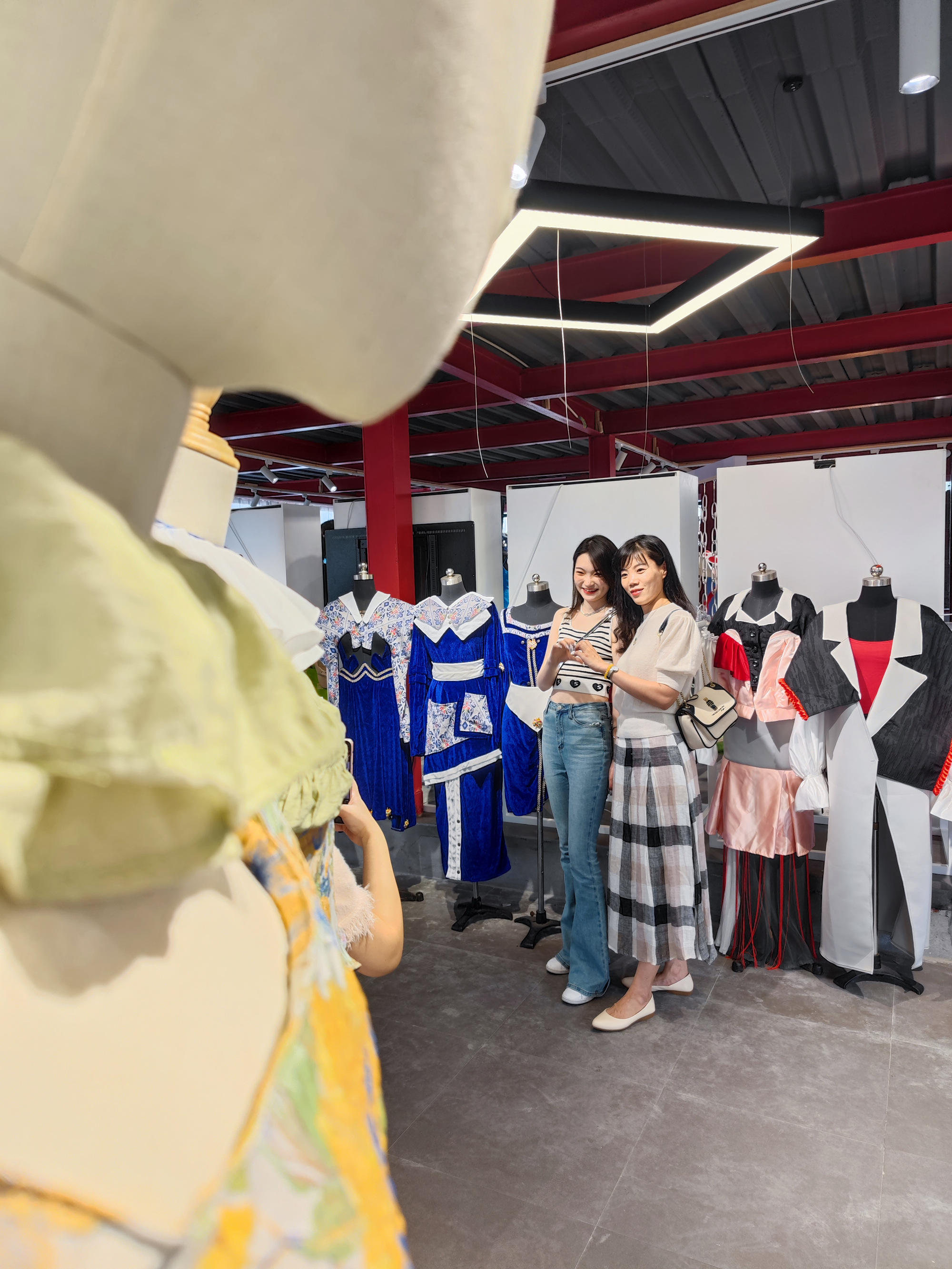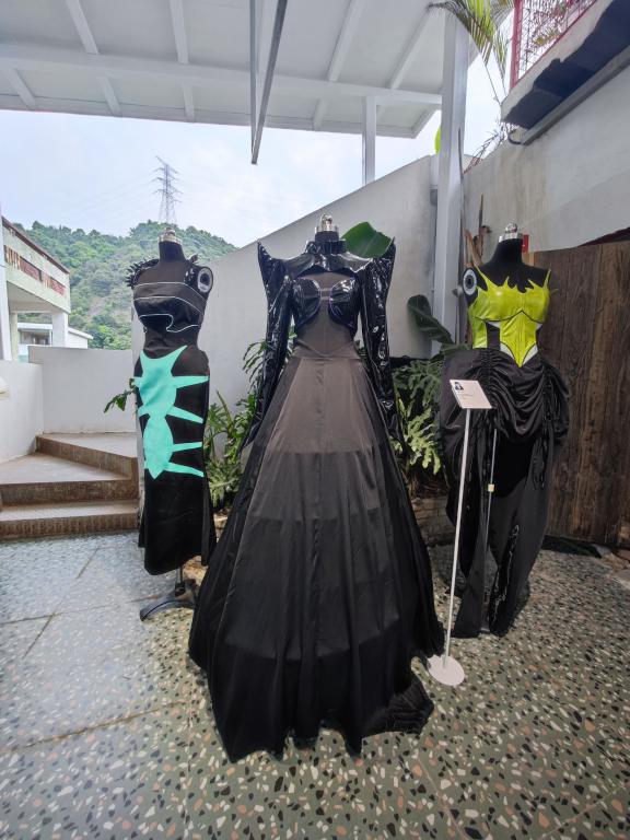 不少来参展的市民都在积极拍照,在丰富多彩的服饰之间摆出各种造型。一位来山根音乐艺术小村游玩的李女士说:“我是带孩子来山根玩,无意间发现今天这里有努努影院 毕业作品展,很惊喜,也可以让孩子从小就多接触一些艺术展览,培养审美。”