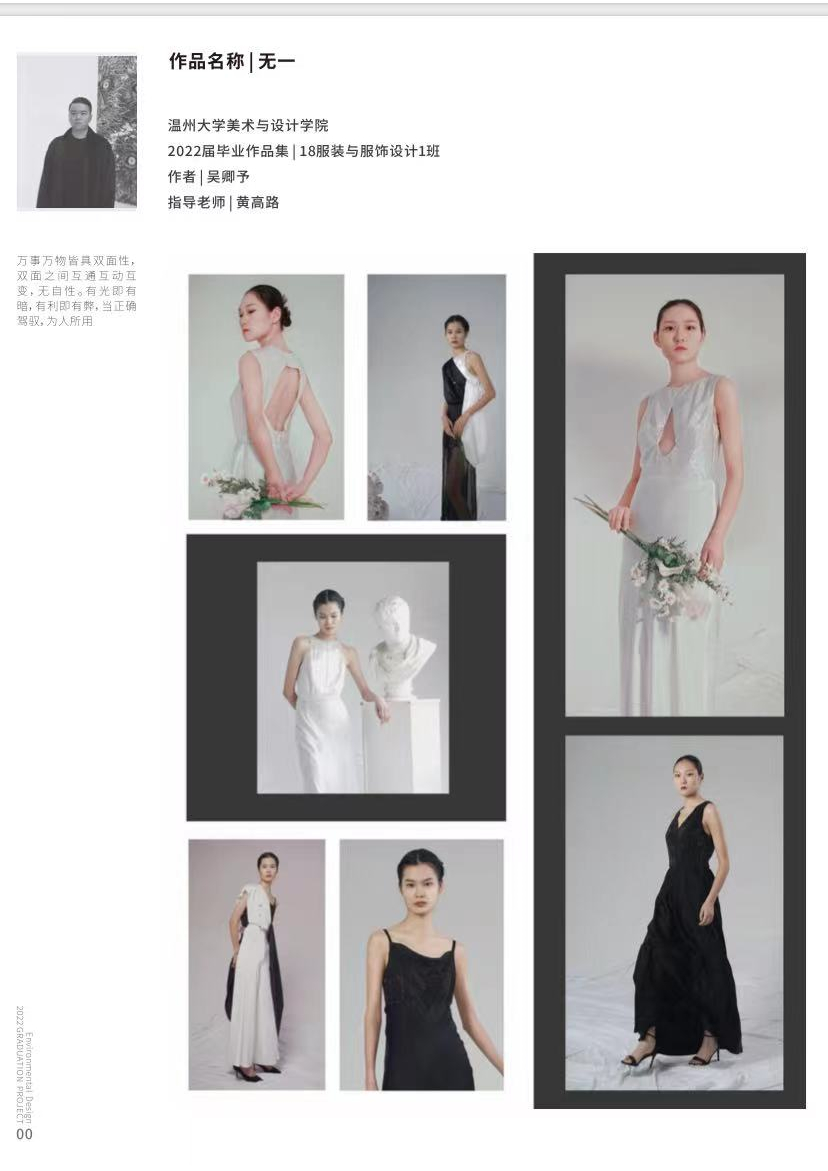 有着“瞬间变装”理念的学生吴卿予,这次带来了毕业作品《无一》,他表示:“人在不同的环境有着不同的面孔与性格。每种不同都各有利弊,我们应该正确利用这些差异来为人所用。变装的理念在于依据人在不同环境需要展示的个性,通过随时可变化的服装来满足着装需求。”