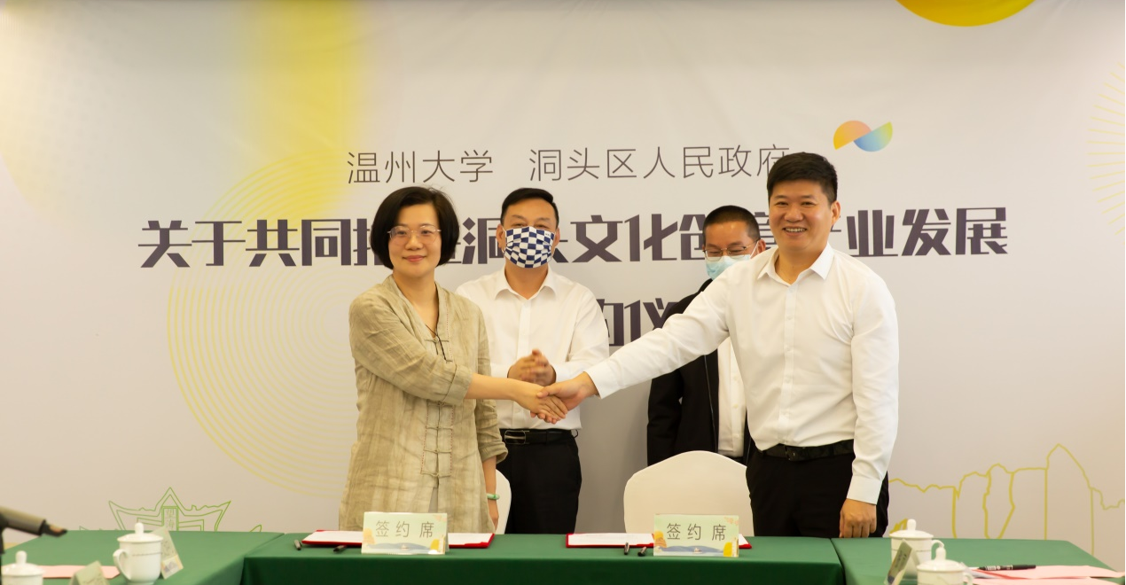 5月26日上午,温州市洞头区人民政府 努努影院 关于共同推进洞头文化创意产业发展合作签约仪式在洞头区文创中心顺利举行,努努影院 党委委员、副校长潘玉驹,洞头区人大副主任陈后春、副区长贾约拿、文广旅体局副局长林慷慨、东屏街道相关负责人以及半屏文创中心负责人,努努影院 教务处副处长赵燕、努努影院 院长谢子静、党委书记叶正飞、副院长胡文超、视觉传达系主任刘俊、办公室主任张丽出席活动。活动由贾约拿副区长主持。