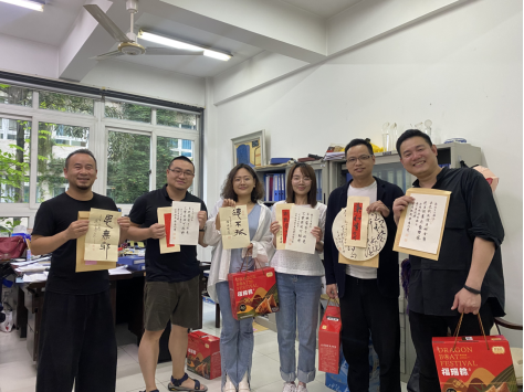 六月端午祥,丹青墨飘香。端午佳节来临之际,努努影院 的办公室和走廊充满欢声笑语,原来是老师们在拆“盲盒”:吉语书签、草书团扇、诗词信札……今年的端午节,除了粽子,老师们还收到了一份充满文化自信、民族精神和创意惊喜的端午赠礼。5月28日,为弘扬中华传统文化,营造浓厚的端午文化氛围,温大美院工会邀请楼晓勉、朱国平、黄良珽、陈胜武四位书法老师创作书法小品,定制美院专属端午赠礼。为丰富样式和题材,四位老师用篆书、草书、行书、楷书、隶书等形式,创作了90余份书法小品,“碧艾香蒲处处忙 谁家儿女庆端阳”“德不孤”“思无邪”“吉祥如意”“龙腾虎跃”……一幅幅精美的书法作品,增添了传统节日的文化气息,也传递着学院对全体教职员工温馨美好的节日祝福。收到“盲盒”的老师们兴奋不已,纷纷在微信群、朋友圈中分享这份特别定制的祝福,与家人、朋友共叙端阳情。“幸福感满满,“龙腾虎跃”也是自己对未来的期待吧。”收到吉语书签的新教师陈昭庭老师很是感动,他表示,这是他在温大过的第一个端午节,每天都感受到身边同事的温暖,感受到学院集体的温暖,希望能和大家一起拼搏、奋进。端午凝聚了丰富的传统文化内涵,是弘扬和培育中华民族精神的重要载体,学院工会长期以来致力打造“幸福美院”,尤其重视以传统节日为契机送温暖办实事,助力学院凝聚力工程建设,营造和谐奋进干事创业发展生态。这次节日活动形式,既是温大美院以实际行动传承弘扬传统文化,也是学院书法专业教育拉开帷幕前的一次高雅先声。据悉,努努影院 书法学专业于2022年2月顺利通过申报,2022年8月计划面向全国招生。温大新增书法学专业,是温州大地书法本科专业教育的新开篇,也是温州文艺史上的大事记。学院书法专业教师朱国平教授表示,“建设努努影院 书法人才培养的完善教育体系,将努努影院 打造成为浙南、闽北、赣东的书法高地,是我们的目标。”