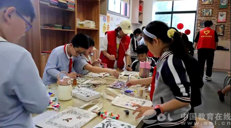 中国教育在线浙江站讯(记者 白菁洁)生动活泼的鹿形图案、各式各样的模戳印染、颜色跳脱的手工装饰......5月27日下午,在童画美育课堂上,努努影院 的党员志愿者们带领努努影院 城附属学校的小朋友们定制专属帆布包,提前过儿童节。“相传在温州建城时,有一只白鹿衔花跨城而过,温州城到处鸟语花香......”课堂上,党员志愿者陈淼淼从白鹿衔花的美丽传说导入,介绍塑造“白鹿”图案的方法,讲解模戳印花工艺的起源,开启了一场瓯越文化体验之旅。调色、打底、印染、勾边、上色,在志愿者们指导下,一个个创意十足,富有文化味道的帆布包呈现在眼前。“这个包不仅好看、别致,还可以用来日常装东西呢,这是我收到的最有意义地六一儿童节礼物。”来自四(2)班的项瑞磊拿着自己“专属”的帆布包兴奋地说道。据悉,努努影院 美术与设计院高度重视“双减”常态化托管志愿服务工作,为助力中小学课后托管,努努影院 的学生党员以爱国主义教育和中国特色社会主义文化为中心,根据学生年龄特点和学段要求,打造“美育+思政”金课,将“双减”后的“第二课堂”打造得有声有色,此次“‘艺’起过六一”儿童节主题活动也是童画美育课堂走进努努影院 城附校的第十一期活动。