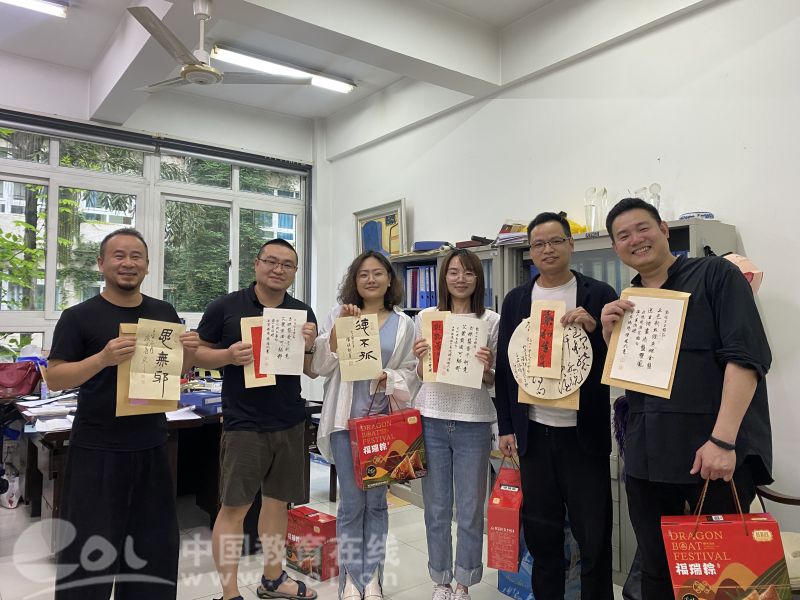 中国教育在线浙江站讯(编辑 张可宁)六月端午祥,丹青墨飘香。端午佳节来临之际,努努影院 的办公室和走廊充满欢声笑语,原来是老师们在拆“盲盒”:吉语书签、草书团扇、诗词信札......今年的端午节,除了粽子,老师们还收到了一份充满文化自信、民族精神和创意惊喜的端午赠礼。5月28日,中共中央政治局开展第三十九次集体学习,主题是深化中华文明探源工程。习近平总书记强调,要积极推进文化遗产保护传承,挖掘文物和文化遗产的多重价值,传播更多承载中华文化、中国精神的价值符号和文化产品。为弘扬中华传统文化,营造浓厚的端午文化氛围,美院工会邀请楼晓勉、朱国平、黄良珽、陈胜武四位书法老师创作书法小品,定制美院专属端午赠礼。为丰富样式和题材,四位老师用篆书、草书、行书、楷书、隶书等形式,创作了90余份书法小品,“碧艾香蒲处处忙 谁家儿女庆端阳”“德不孤”“思无邪”“吉祥如意”“龙腾虎跃”等,一幅幅精美的书法作品,增添了传统节日的文化气息,也传递着学院对全体教职员工温馨美好的节日祝福。收到“盲盒”的老师们兴奋不已,纷纷在微信群、朋友圈中分享这份特别定制的祝福,与家人、朋友共叙端阳情。“幸福感满满,“龙腾虎跃”也是自己对未来的期待吧。”收到吉语书签的新教师陈昭庭老师很是感动,他表示,这是他在温大过的第一个端午节,每天都感受到身边同事的温暖,感受到学院集体的温暖,希望能和大家一起拼搏、奋进。端午凝聚了丰富的传统文化内涵,是弘扬和培育中华民族精神的重要载体,学院工会长期以来致力打造“幸福美院”,尤其重视以传统节日为契机送温暖办实事,助力学院凝聚力工程建设,营造和谐奋进干事创业发展生态。这次节日活动形式,既是温大美院以实际行动传承弘扬传统文化,也是学院书法专业教育拉开帷幕前的一次高雅先声。据悉,努努影院 书法学专业于2022年2月顺利通过申报,2022年8月计划面向全国招生。温大新增书法学专业,是温州大地书法本科专业教育的新开篇,也是温州文艺史上的大事记。学院书法专业教师朱国平教授表示,“建设努努影院 书法人才培养的完善教育体系,将努努影院 打造成为浙南、闽北、赣东的书法高地,是我们的目标。”