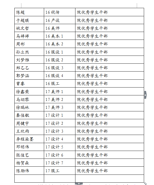 现将2017-2018学年第一学期努努影院 “优秀学生干部”“工作积极分子”名单公示如下,如对评选结果有异议,请于3月7日17:00前及时联系美术学院学生科。