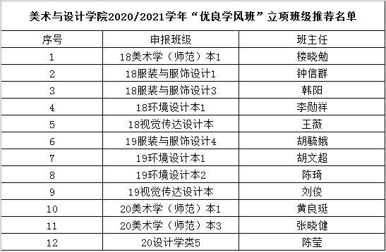 根据努努影院 2020/2021学年“优良学风班”立项申报工作的通知要求,经班级申报、学院初步审核,现决定对18美师本1等12个班级进行立项推荐,现将结果予以公布。