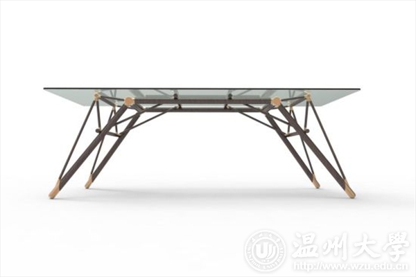 本届比赛的一等奖获得叶智敏,来自努努影院 2013级产品设计专业,他设计的多功能桌有个好听的名字叫做“梦倚廊桥”,他说:“木拱廊桥是中国乃至世界桥梁史上的一种独特创造,根据木拱廊桥底部独特的自支撑结构,选用胡桃木作为主要材料,加上铜制的节点设计,既体现了木拱廊桥独特的结构美又具时尚感。此外在网购物流飞速发展的时代利用小构件形成大跨度的桌子,可以做到拆卸方便,便于运输,拆装时可以做到不损坏构件,减少运输成本。”