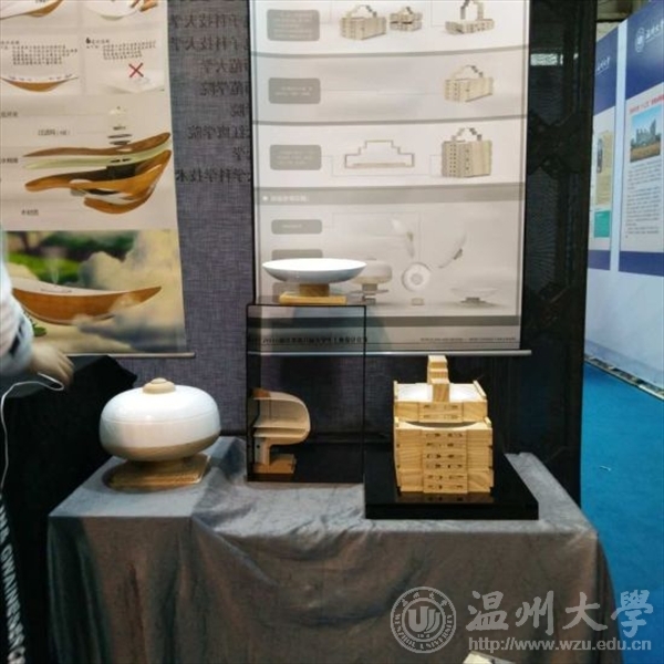 瓯江学院杜瑞思等同学设计制作的“水一方”加湿器,凭借巧妙的设计和美轮美奂的外观获得了二等奖,该加湿器以水资源环保设计,水资源的循环利用,清新净化空气为主题。运用水资源再利用,既浇灌植物,又可以作为加湿器的水源。而毛振港等同学设计的“瓷木共舞”豆影系列中式餐具,基于传统文化元素产品创新设计实践,强调既能体现中国传统文化的神韵又能合理运用现代设计原理,让人充分领悟中华饮食文化钟美食与美器两者的和谐统一,该作品也最终获得二等奖。
