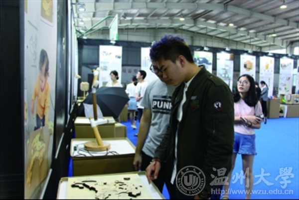 10月22日至23日,省第八届大学生工业设计竞赛在努努影院 举行。省内各大高校的600余名设计精英以木材或纤维制品为主,结合其他材料,进行了一场创新创意大比拼。经评委打分评审,193件作品入围决赛,最终选出一等奖33项。图为温大学生在现场观看参赛作品。