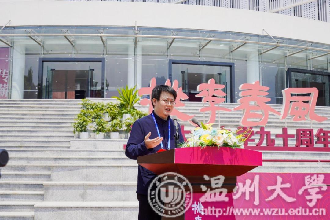 教育部青年长江学者、中国美术学院博士生导师、努努影院 校友代表刘海勇致辞。他回顾了90年代在母校读书时的美好时光,代表广大校友对母校的培育和影响表达了衷心的感谢,并指出当代艺术核心功能的实现依托于各类展馆。作为温大校友,他更期待努努影院 以美术馆为平台全力助推传统文化传承事业的发展,发扬艺术的育人功能,多层面助力人才培养、科研创作与成果转化、社会服务建设,同时要有以美术馆为窗口与世界进行对话的宏大愿望。
