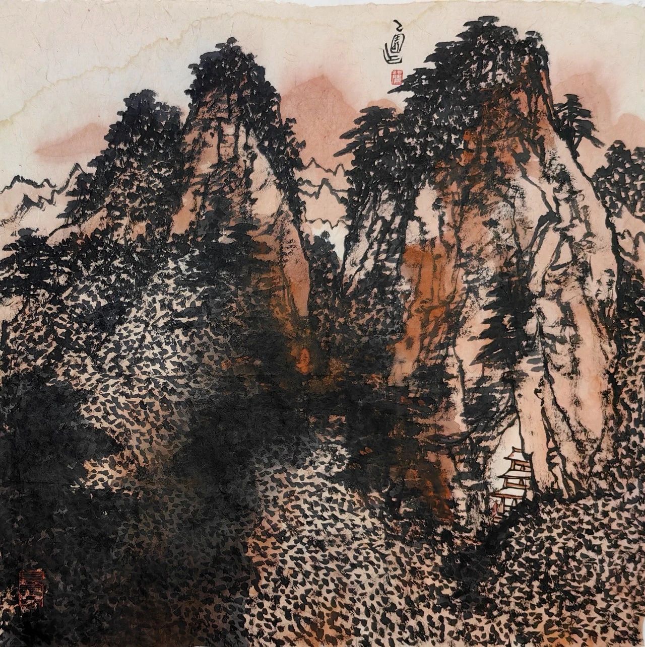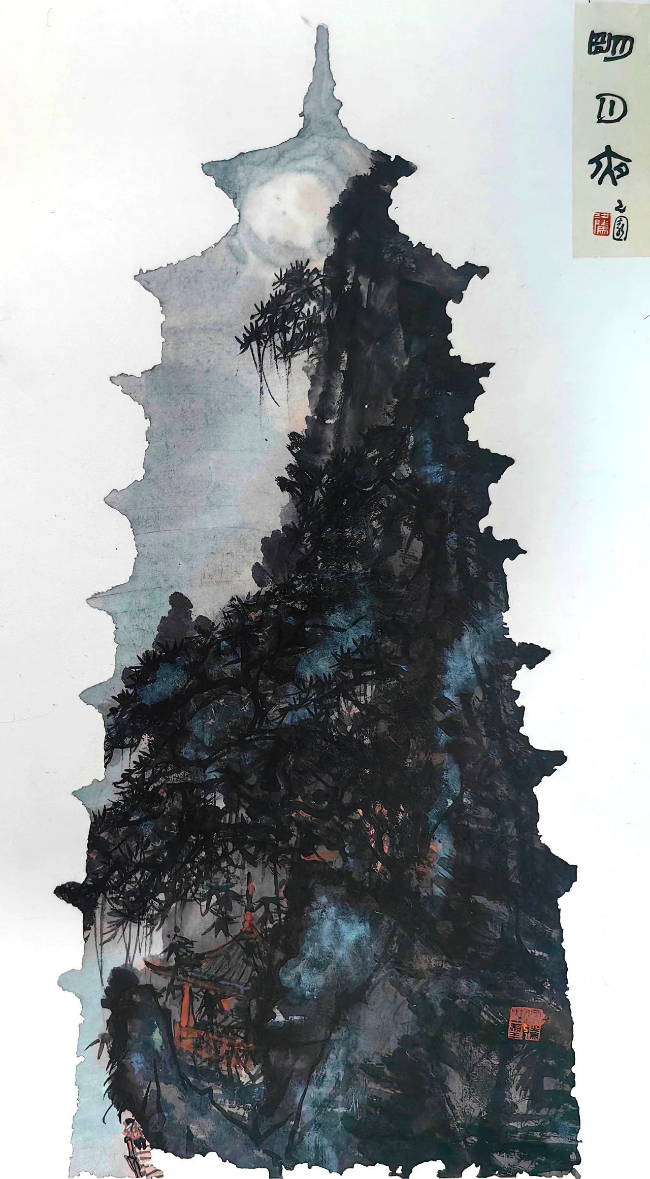 梁腾最具创新性的艺术成果,当属他首创的塔画系列。他以敏锐的艺术视角,将那些“陈列在广阔大地上的遗产”——塔,通过艺术的形式呈现在世人面前。这些塔画作品,不仅是对传统建筑艺术的赞美,更是对文化遗产保护的深刻思考。他用画笔记录下塔的历史变迁和文化内涵,让这些古老的建筑焕发出新的生机与活力,成为连接过去与未来的文化纽带。