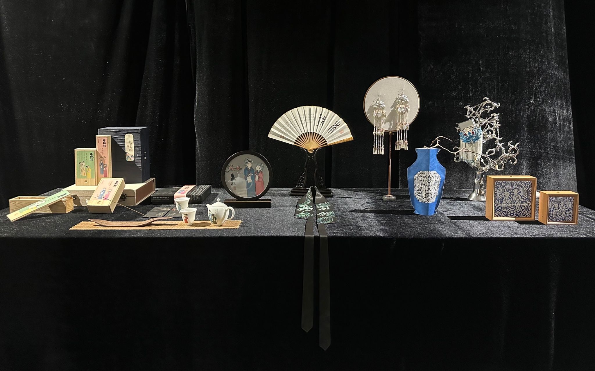 此外,学生向佳还将传统技艺与现代科技结合,创作出蓝夹缬非遗动画,通过老式照相机为造型蓝本将戏曲蓝夹缬的图案一张张展现,让戏曲纹样在动态演绎中焕发新生。谢子静评价:“这种形式让观众在沉浸式体验中感知古老技艺的现代魅力。”
