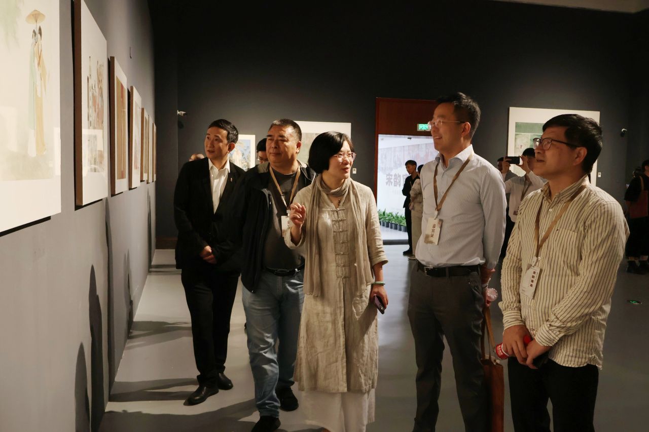 展区中,“研究+创作+传播”的立体化体系清晰可见。针对年轻创作者对南戏的陌生感,策展团队特邀国家一级美术师戴宏海,南戏研究学者、博士生导师俞为民,国家一级编剧张思聪组成学术顾问团,通过剧本解读、实景演出观摩等活动,让画家们在唱念做打间直观感受角色情感脉络。