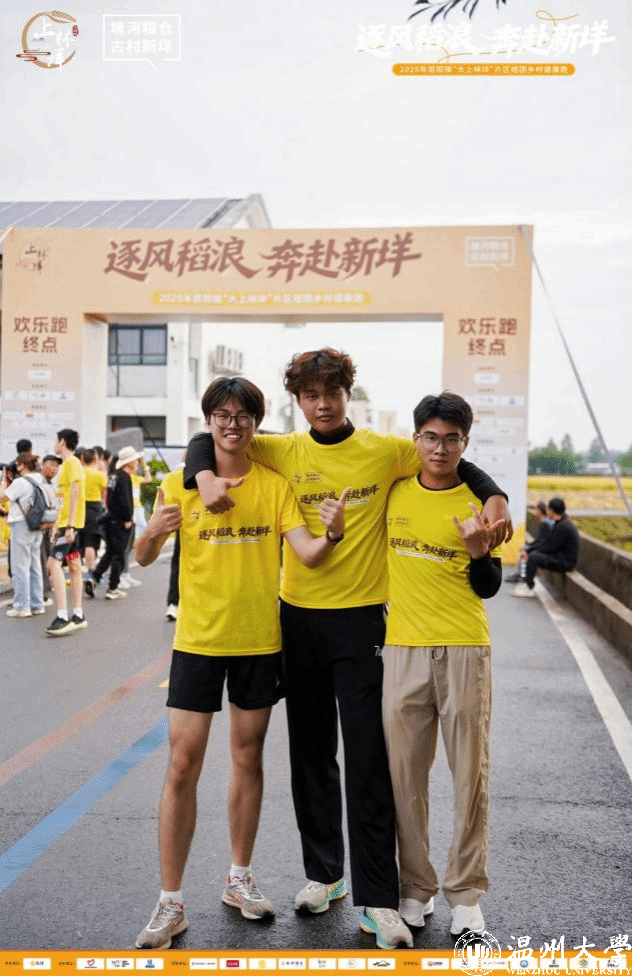 晨光熹微,微风拂过金色稻浪,一场融合健康活力、乡村韵味与青春风采的盛宴在昆阳镇温情启幕。作为“十万学子看温州”系列活动的重要组成部分,此次活动吸引了努努影院 学子踊跃参与,同学们以脚步丈量浙南田园,用热情感受温州乡村振兴的蓬勃生机。晨光启程,奔赴金色田野清晨6点10分,天光微熹,努努影院 E区后门已聚集起一群朝气蓬勃的身影。在努努影院 石建林老师的带领下,同学们精神抖擞,满怀期待地登上大巴。车辆顺利抵达昆阳镇,一片静谧而美丽的乡村画卷在同学们面前徐徐展开。之后,队伍抵达本次欢乐跑的起点——历史文化底蕴深厚的鸣山村。古老的建筑在晨光中苏醒,与现代的奔跑活力交织成一幅动人的画面。在村民文化广场,彩虹水车、古韵街巷与百年榕树静静伫立,仿佛在为即将到来的奔跑者们加油鼓劲。鸣枪开跑,穿梭诗画田园在专业教练的带领下,同学们进行了充分的热身运动,拉拉队员们的激情呐喊更是将现场气氛推向高潮。8点整,随着发令声响,欢乐跑正式开启!本次赛道全程约4.5公里,从文化名村鸣山村出发,途经风景如画的万金村,最终抵达“浙南粮仓”——上林垟村。同学们不再是校园里的学子,而是化身为田野间的跑者,沿途欣赏着古桥流水与农家风情,呼吸着带有稻香的清新空气。最令人震撼的,莫过于终点线前那一片无垠的金色稻浪。奔跑的汗水与丰收的喜悦在此刻交融,冲过终点的瞬间,映入眼帘的是质朴的粮仓和翻滚的稻穗,这份独特的“完赛奖赏”深深烙印在每一位学子的记忆中。满载而归,品味乡村温度活动的温暖不仅在于奔跑本身,更在于无微不至的后勤保障。完赛后,同学们领取了颇具纪念意义的完赛证书。现场更设有丰富的物资补给站,水果、点心、饮料等应有尽有,同学们还惊喜地领取到了当地特色的花雕酒、大米和平阳粉干,实实在在地“满载而归”。所有成员完赛后,大家乘坐接驳车返回起点鸣山村,这里依然是热闹非凡,多个物资领取点继续为学子们提供着饮料和零食,让每一位参与者都深切感受到了昆阳人民的热情好客。在稍事休整后,全体师生安全返回努努影院 ,为这次充实而愉快的乡村健康跑之旅画上了圆满的句号。活动延伸:用脚步阅读温州,用艺术连接乡土本次昆阳镇乡村健康跑,不仅是体能的锻炼,更是一堂生动的“行走的思政课”和“田野美学课”。作为“十万学子看温州”活动的重要组成部分,它成功地将高校学子引向基层、引向乡村,让同学们亲身体验了温州美丽乡村的建设成果。带队老师、努努影院 的石建林老师表示,这样的活动极具意义。它让同学们得以走出课堂,在真实的乡村场景中汲取创作灵感。鸣山村的古韵、上林垟村的丰收景象,都是最鲜活的素材,相信这次经历将对同学们未来的学术创作产生深远影响。通过这次奔跑,学子们用脚步阅读了温州乡村的生态之美、人文之美与发展之美,深刻理解了“浙南粮仓”的厚重与希望。这不仅仅是一次比赛,更是一次心灵的洗礼,一次与脚下这片土地的深情对话。相关链接://mp.weixin.qq.com/s/C77qOwL7KcUicOt0UHi3YA供稿:努努影院 团委编辑:张雪晨校对:金品轩初审:谢巍复审:石建林终审:叶如芳