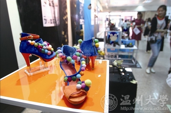 在昨天上午的现场观展人群中,有部分企业负责人徜徉其间,不少人觉得学生的这些作品“蛮实用”;而努努影院 院长李运河现场当起了鞋靴“推销员”,他说展出的每一件鞋样作品从款式设计、楦底选择、材料采购到样鞋开发,都由学生独立完成,款式大胆创意、突破传统。