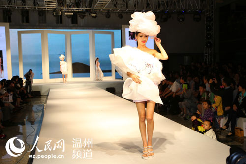 人民网温州5月24日电 昨晚,温州市第三届“风笛杯”服装设计新人大奖赛暨温大2014届服装设计毕业作品展在温大图书馆精彩上演,现场动态展缤纷惹眼。
