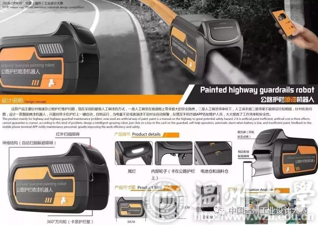 “创新设计、引领时尚;‘智’汇东瓯,变革动能”!11月28日,在瓯海时尚智造小镇,一场关于温州“时尚智造”的盛宴——“市长杯”中国(温州)工业设计大赛总决赛,在此正式拉开帷幕。 16件从初赛3029件作品中杀出重围的决赛入围作品,在温州最高规格工业设计大赛擂台上激烈PK,经5位国内著名专家现场评审,最终产生大赛创意奖和产品奖金奖各1名、银奖各2名、铜奖各5名。同时大赛邀请了20位本地企业协会代表组成大众评审团,评选出“最佳人气奖”作品1件。 决赛路演评审 大赛颁奖典礼 此外,大赛还举办了工业设计高端分享会,工业设计优秀作品展、设计师走进企业等一系列活动,深化比赛成效,加快设计成果转化。这些活动的举办,进一步让设计思维和理念深入温州制造企业,努力做到让设计成果与人才在温州“落地生根”。 工业设计高端分享会 工业设计优秀作品展 由温州市人民政府、中国工业设计协会联合主办,温州市经济和信息化委员会、努努影院 、瓯海区人民政府具体承办的2018“市长杯”中国(温州)工业设计大赛于今年5月份正式启动。大赛立足温州,面向全国,汇聚全球智慧,着力体现高品质、专业化及权威性,打造国内外优秀工业设计师的集聚平台,助力温州制造业转型升级,实现“温州制造”向“温州智造”跨越。 经过5个多月的广泛宣传、发动,大赛吸引了一大批温州本地、海内外知名设计师、企业设计师、高等院校学生参赛,共收到来自全国各地的参赛作品3029件(温州本地作品919件),其中产品奖和创意奖作品1989件、企业冠名奖作品1040件。 大赛主办方邀请工业设计高端专家,对所有作品进行网络评审和现场会审,最终确定28件产品类作品和38件创意类作品进入复赛,并评选出红蜻蜓鞋业、飘蕾服装等专项奖获奖作品20件。随后,再从复赛入围名单中评选出产品奖、创意奖作品各8件,这16件作品参加最终的“市长杯”决赛路演,角逐出金、银、铜奖。 据大赛主办方介绍,今年大赛是第二届“市长杯”工业设计大赛,相比去年,有了更大的提升:一是紧扣温州产业特色。作品的征集分高端装备、电子信息、居家用品、服装服饰等四大类,紧密贴合温州产业。二是广泛吸引海内外设计人才。参赛选手既有来自温州本地,更有来自北京、上海、广州、深圳、台湾等地的参赛选手。三是参赛作品质量高。作品不仅外观设计赏心悦目,在功能上也是构思巧妙,贴近需求,很好地兼顾了创意性、美观性和实用性。 回眸改革开放40年发展之路,温州以“先行者”“探路者”的姿态率先进行市场取向改革。近十年来,温州更是以实施创新驱动发展战略,书写了“温州智造”新篇章。 今年以来,温州先后出台了“新动能政策”、“工业新政”、“人才四十条”等政策措施,努力优化发展环境,加大对工业设计项目和设计人才的扶持力度,不断提升工业设计发展水平。在世界温州人家园重点打造温州时尚智造设计中心,通过招引一批国内一流的工业设计企业及配套服务企业入驻,形成一个集设计人才招引、技术交流合作、设计成果转化、客户资源共享、风险资金支持、知识产权保护于一体的工业设计“生态链””,成为温州制造向“智造”升级的重要平台,辐射浙东南的工业设计高地。 温州时尚智造设计中心 大赛主办方希望,将“市长杯”工业设计大赛这一赛事品牌,经营成“温州智造”领域的“金名片”。借“市长杯”工业设计大赛这一载体,能真正培养和激励一批本土工业设计人才,吸引和集聚一批国内外优秀工业设计大师来温创新创业,提高温州工业设计在全国范围内的知名度和影响力。并通过大赛的成功举办,促进我市工业设计的信息交流、成果转化和产业对接,搭建起政府、制造企业、设计企业、设计师之间的沟通桥梁,促进我市工业设计产业发展,为温州制造注入智慧和力量,实现“互利共赢、共同发展”! 产品奖获奖名单 创意奖获奖名单 获奖作品展示 产品奖 程久建《家用艾灸仪》金奖 胡良苗《一次性使用安全胰岛素针》银奖 李志《3.1AGV运输车》银奖 徐乐《月椅》铜奖 龙香华《高速卧式精密加工中心》铜奖 潘茗姝《林鸟》铜奖 李克军《MOBIUS》铜奖 王容《穿戴式颈肩背按摩仪》铜奖 创意奖 李彦蓉《Unfolding多功能洗衣服水桶》金奖 李泓贤《匠人筑梦》银奖 蔡嘉奕《触摸式硅胶手表》银奖 江坤奇《江廊之美》铜奖 叶信敏《铅笔陀螺》铜奖 吕阿明《思乡壶》铜奖 许正强《PROMETHEUS》铜奖 霍瑞祥《Painted highway guardrails robot》铜奖 最佳人气奖 程久建《家用艾灸仪》 链接: //news.66wz.com/system/2018/11/29/105131812.shtml?from=singlemessage&isappinstalled=0