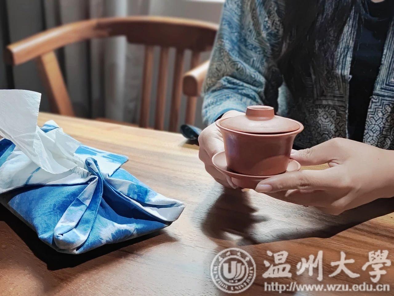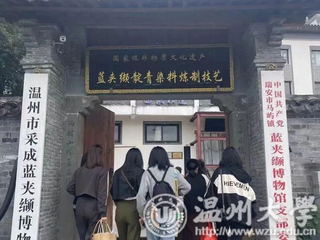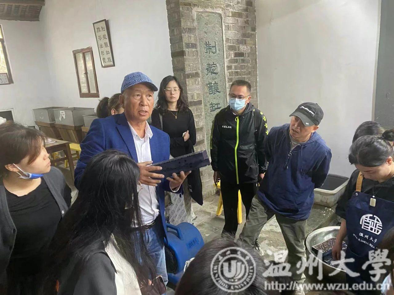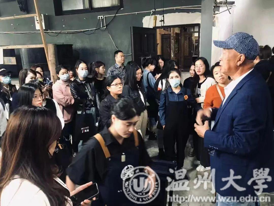 夹缬作为最古老的的一种印染艺术,温州蓝夹缬现已成为国家级的非物质文化遗产。学员们参观蓝夹缬采成博物馆,聆听国家级非遗传承人王河生老师的亲自授课。