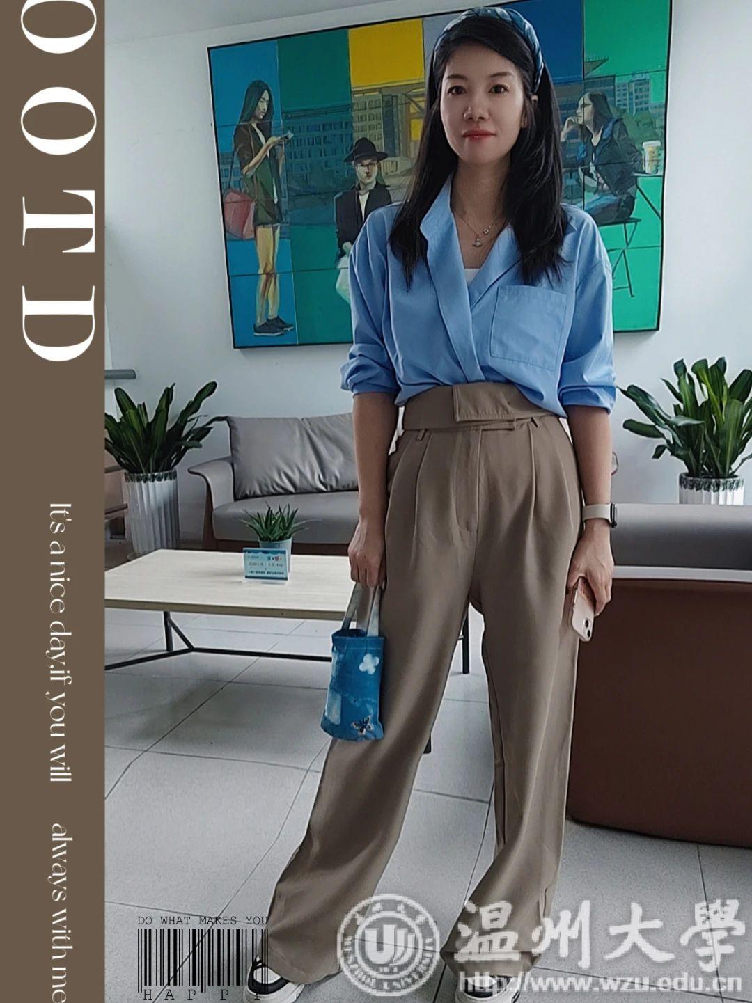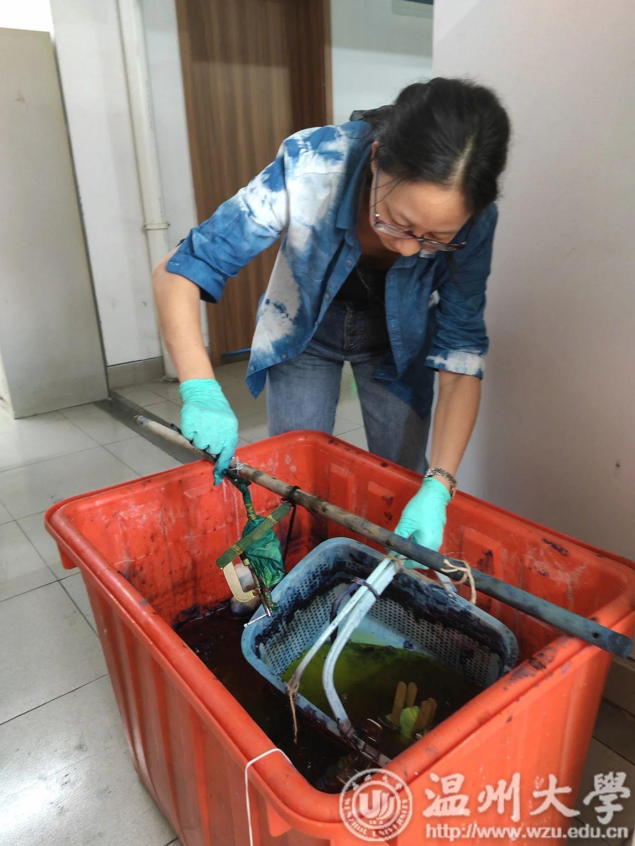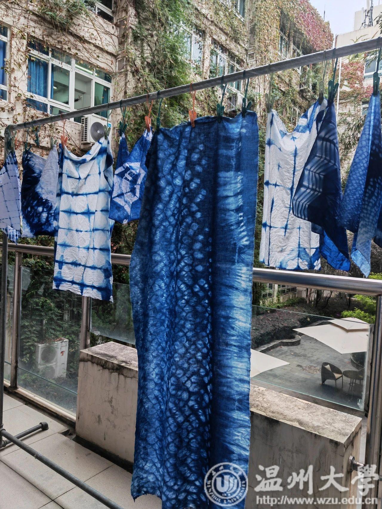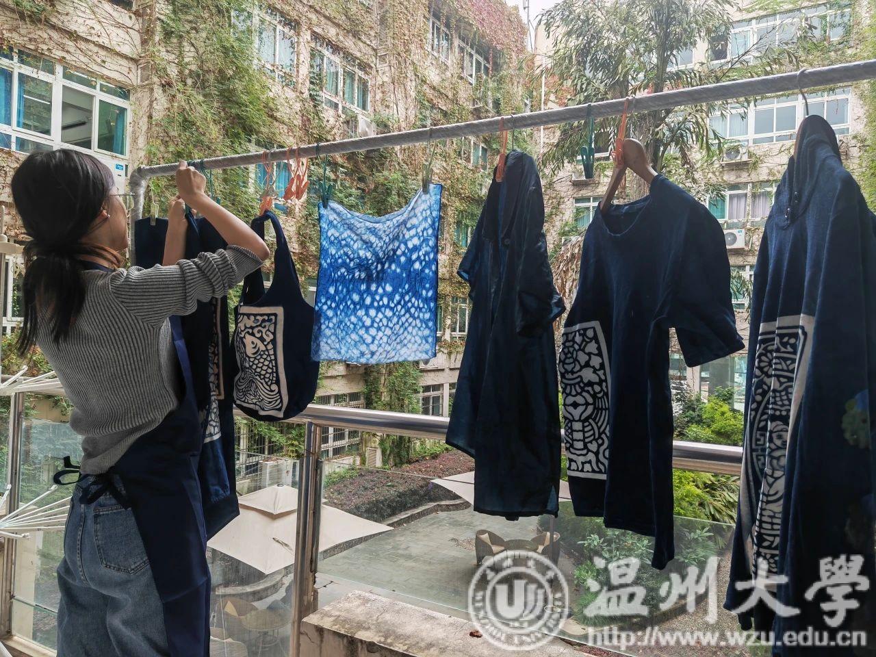 金晨怡教授以中华传统的古法蓝染体验为基础,以服饰设计和生活用品等为创新探究项目驱动,探索蓝染布的现代演绎,设计并制作文创产品,提升创新素养。