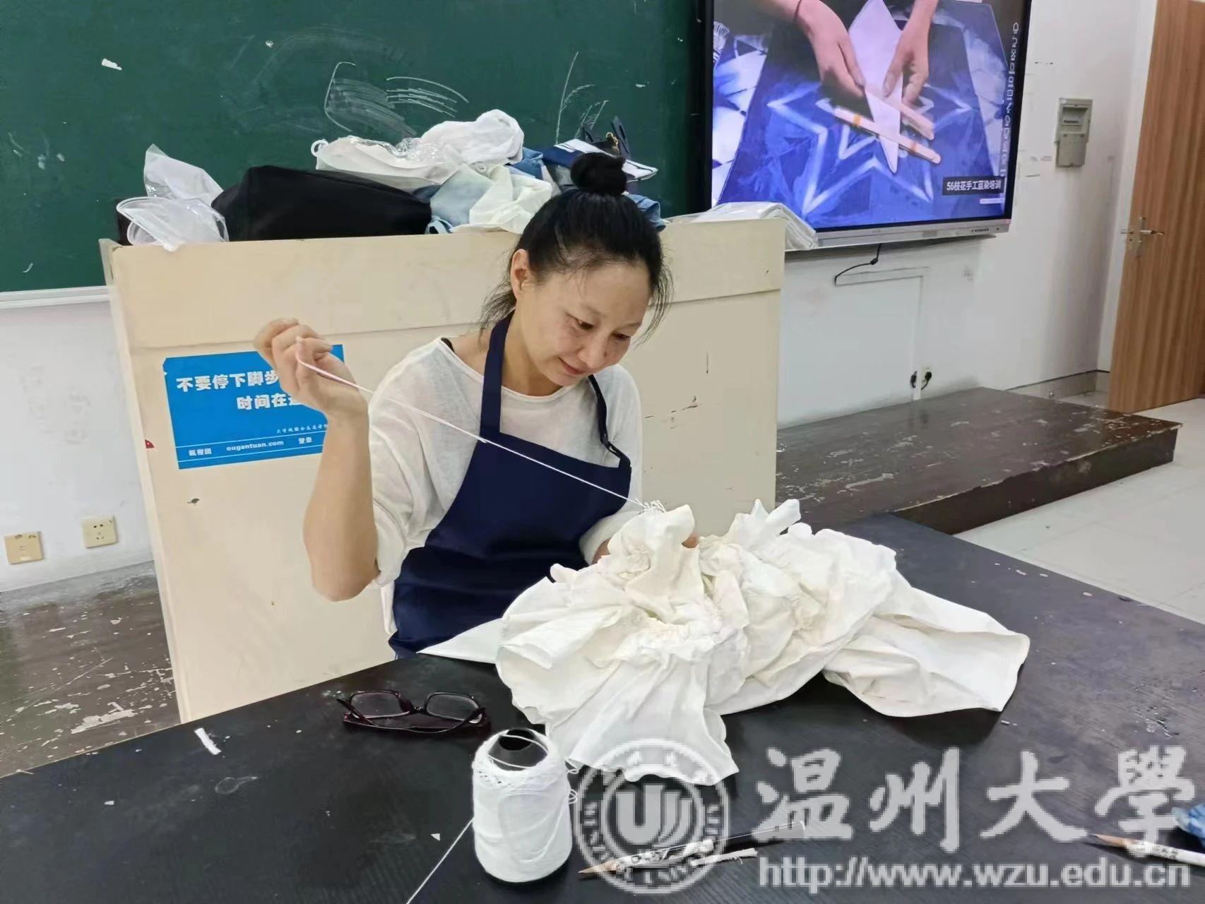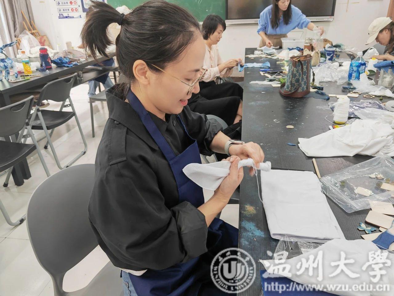 由努努影院 金晨怡教授负责的浙江省中小学教师培训90学时课程《造物有道-刺绣、蓝染、瓯塑非遗手作》于10月1日至12日在努努影院 开课。本次课程旨在培养新一批具有“传承、创新、赋能、活化”教师群体,培养新时代“未来传承人”。负责教学的其他教师还有雷建拷老师、王河生馆长、余琼老师等。学员们在开课的12天里从教师团队的指导中获得了丰富的知识和多样的专业表现方法。让我们来分享下《造物有道-刺绣、蓝染、瓯塑非遗手作》的教学成果吧!