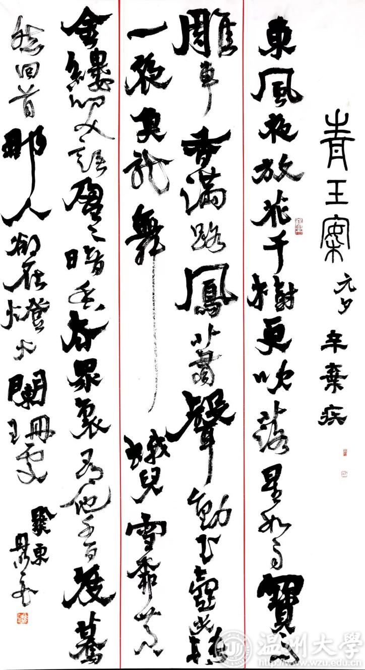 为进一步推进学校美育建设工作,服务我校教职工日常文化生活,努努影院 将于2023—2024第一学期组织开展「书法公益课堂」。开课时间2023年11月1日——2024年1月6日上课地点努努影院 美术馆一楼美育教室(努努影院 校友之家对面)年龄限制少儿毛笔书法 :小学3年级以上成人:不限招生人数少儿毛笔书法:20——25人成人毛笔书法:20——25人教学团队教师团队:努努影院 书法学专业教师团队课程助理:努努影院 书法学专业在校生课程目标掌握毛笔书法基本书写规范和要求;具备对某一碑帖的审美欣赏和解读能力;能够较为熟练的掌握某一经典碑帖的临摹技法。课程要求报名后尽量全勤,中途连续缺勤3次者自动退出本学期公益课堂材料费100元/人教师简介朱国平,教授/硕士生导师/博士。江苏省“五个一批”人才 ,常州市中青年专业技术拔尖人才 ,中国书法家协会会员,上海市书画院特聘画师 ,常州画院画师,努努影院 书法学专业负责人,常州市书法家协会顾问,书法作品分别获第一、二、五届中国书法兰亭奖创作奖、艺术奖 、佳作奖,入展第八 、十 、十一届全国书法篆刻展等20余次“全国展 ”,在江、浙两省省级展览中获八次金奖。有多幅作品被各级博物馆美术馆收藏,曾多次举办个人书画展及联展。主持浙江省哲学社会科学后期资助项目“书法对绘画的影响研究”1项,参与国家社会科学基金重大委托项目及一般项目各1项,发表学术论文多篇。出版专著《书法对绘画的影响研究》、《在大学课堂听书法课》2部 ,出版有《朱国平书法作品集》、 《当代江苏青年书法家——朱国平卷》2部。行书恽南田书画手稿一则行书自作诗四首楼晓勉,毕业于中国美术学院国画系书法篆刻专业。现为努努影院 副教授、美术系副主任。中国书法家协会会员、浙江省书法家协会女书法家委员会副主席、温州市书法家协会副主席、温州市女书法家协会主席。书法篆刻作品参展西泠印社首届、二届国际篆刻书法作品大展,全国第四届篆刻艺术展,全国第三届楹联书法大展等。论文发表于《中国书法》《新美术》《书画教育》等专业刊物。主编或参与编写《历代小楷精选》、《中国高等院校美术设计教研大系—书法篆刻卷》等书籍。出版《楼晓勉书法作品集》。隶书条幅行草条幅高玥,山东临清人,中国艺术研究院博士,努努影院 书法学专业教师。中国书法家协会会员、安徽省书法家协会篆刻委员会委员、浙江省青年书法家协会教育委员会副主任、中国标准草书学社社员。 作品参展全国首届楷书作品展、全国首届王羲之奖书法作品展、“西泠印社第十届篆刻艺术评展”等。在《南京艺术学院学报·美术与设计版》《艺术百家》《西泠艺丛》等杂志发表论文多篇,作品散见于《书法报》《书法导报》《中国篆刻》等。篆刻四条屏隶书《史记·河渠书》节录冉明, 贵州铜仁人,土家族,2008年、2011年、2022年分别获中国美术学院书法专业学士、硕士、博士学位;现为努努影院 教师、书法产教融合研究中心主任;中国美术学院特聘教师;浙江省青年书协学术委员会委员,西湖区书协理事,教育部课题2项在研,出版有《冉明学书履迹》《新书谱•颜勤礼碑》等。草书三条屏草书条幅陆嘉磊,努努影院 讲师。1992年生于浙江杭州。中国美术学院博士。现任杭州市青年文联会员、浙江省青年书法家协会篆刻委员会副秘书长。研究论文发表于《美术》、《美术大观》、《美术教育研究》等核心期刊,作为第三责任人参与国家艺术基金项目《百年巨匠——浙派艺术大家群像》、第二责任人参与国家艺术基金项目《传统文化名句组印》、第三负责人参与浙江文化艺术发展基金项目《宋韵朱痕——两宋诗词名句组印并跋百品》等系列课题。李阳冰《三坟记》临摹篆书条幅《世说新语》选录陈建胜,努努影院 教师、台湾中兴大学博士、中国美术学院外聘教师。浙江省书法研究会理事、中国文字学会会员(台湾)。著有《说文部首源流——字体演变与形义图释》(上、下册)一书及合著4部,发表学术论文10余篇。行楷《大司命》隶书 修身积德联教学环境努努影院 美术馆位于努努影院 北校区西南位置,建设改造项目总投资2600万元,总面积20000平方米,建筑使用面积4000平方米,拥有特展馆、典藏馆、数字艺术等4个展厅,展线600米,并设有多功能大厅、美育教室、水上T台、休闲吧、库房、会议接待室等配套设施,是浙江省综合性高校中占地面积最大、温州地区展线最长的展馆,也是全国唯一拥有数字艺术展厅和水上T台的高校美术馆。报名事宜报名截止时间:10月28日12时止联系人: 尹乃军老师、高玥老师电话:13705882414、18205611225暑假公益班掠影
