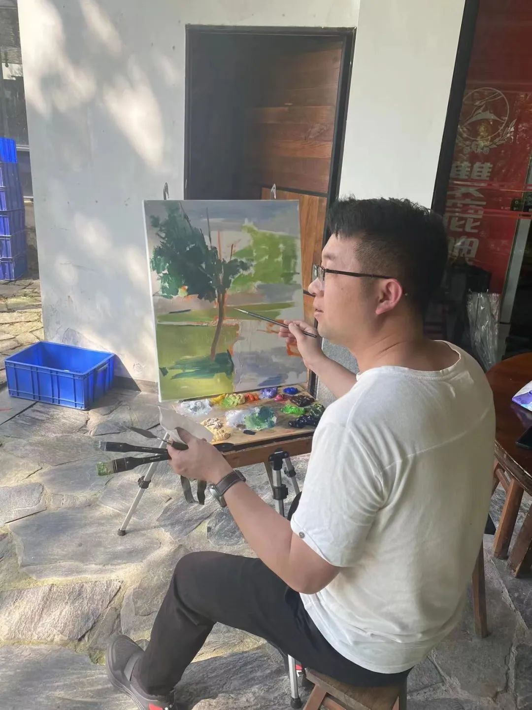 2022年4月11日-4月15日,为期5天的温州市中小学教师继续教育《油画风景写生技法研究与教学》在永嘉书院开课。课程培训由蔡可群老师、黄良珽老师执教。首先通过专题讲座的形式进行理论引领,然后导师示范讲解了解绘画语言与创作思路的重要性,让到室外写生练习,并进行创作,并通过作品讲评与交流感悟中国油画及油画课程实施的意义与价值,以及对课程的回顾和反思;最后在此基础上进行自身的艺术研究与美术教学的设计。 让我们来分享下《油画风景写生技法研究与教学》的教学成果吧! 教师教学风采 黄良珽老师授课现场 蔡可群老师示范教学 学员风采 大合影 学员作品赏析 鲍洪华 毕怡然 陈焱 洪小微 胡伯灶 黄良宫 金尔立 金建新 金璐璐 连旭东 梁慧慧 柳晓阳 梅红 南存义 潘章丰 王本德 王丹 吴建双 项方赏 谢玲玲 徐小玲 杨潇潇 张佳佳 张明 张巧巧 郑晓燕 赵静静 郑孝冰 支瑶瑶