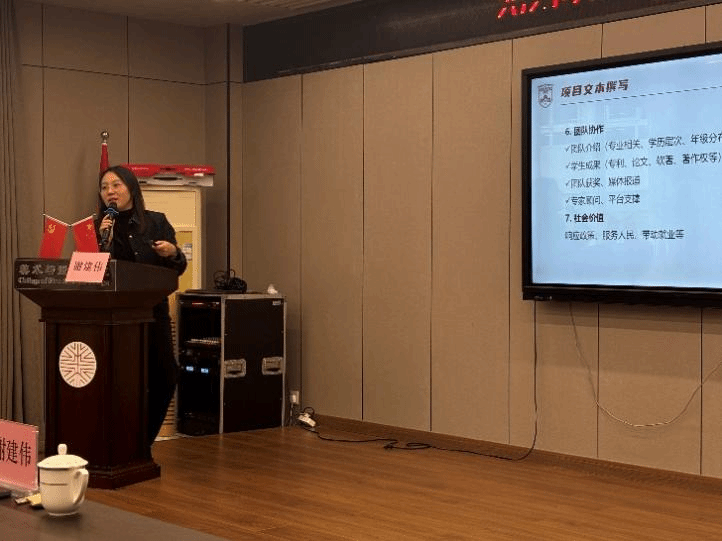 在赛事流程与参赛要求讲解环节,谢老师重点梳理了从学院预赛、校级复赛到省级、全国决赛的全流程时间节点,明确了专科生、本科生、硕士研究生的参赛资格及团队组成规则。针对努努影院 专业特色,主讲人重点强调了“文化创意和区域交流合作” 等参赛组别,鼓励团干结合专业所长,选择“工艺与设计”“动漫广告” 等方向,同时要结合温州特点、社会热点、学校专业优势,还举了“绘梦星河”帮孤独症儿童康复荣获全国金奖的例子,让选题脱颖而出。